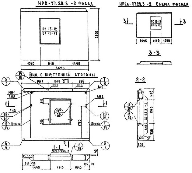 НР2л-37.29.3-2    Наружная стеновая панель рядовая по Серии 1.132-2.