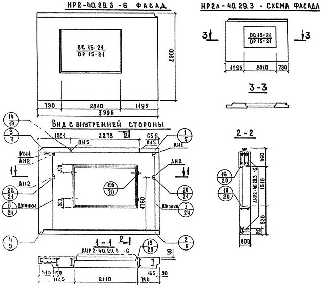 НР2л-40.29.3-6 Наружная стеновая панель рядовая по Серии 1.132-2.